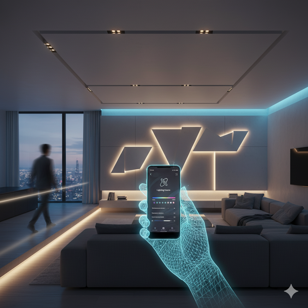 Smart lights with motion sensors, automated dimming and tunable brightness – controlled by voice, phone or scene switches. No switches. Just seamless, intelligent glow.